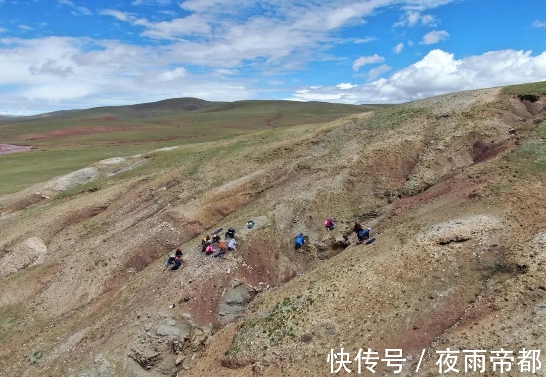 研究团队在班戈县蒋浪植物群2号层位踏勘。图片由中科院西双版纳热带植物园苏涛研究员提供
